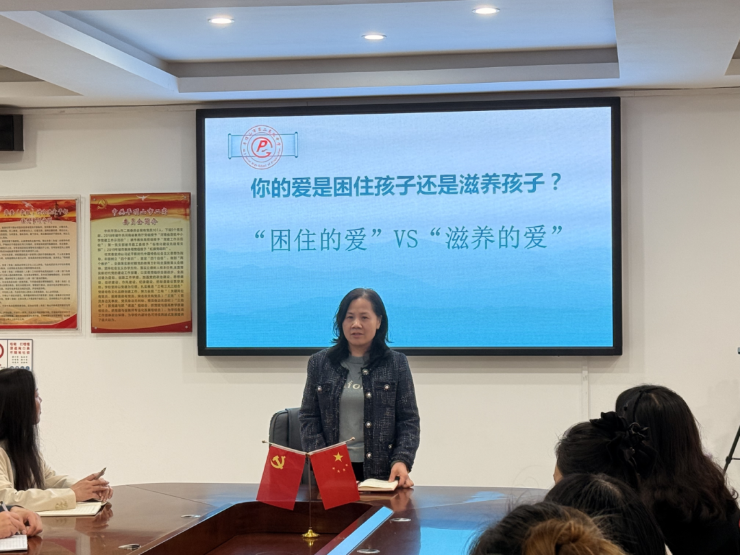 随后,苏老师以“你的爱是困住孩子还是滋养孩子?”为主题主持家长沙龙。苏老师结合当前家庭教育的困惑,通过引导讨论、经验分享,鼓励家长交流陪伴孩子成长过程中的疑问与感悟,适时进行引导与点评,帮助家长觉察自身行为背后的情绪,深入理解孩子行为背后的心理需求;同时结合案例与心理学视角,引导家长反思 “爱的本质与方式”,分享实用亲子沟通技巧,助力家长提升家庭教育实操能力。