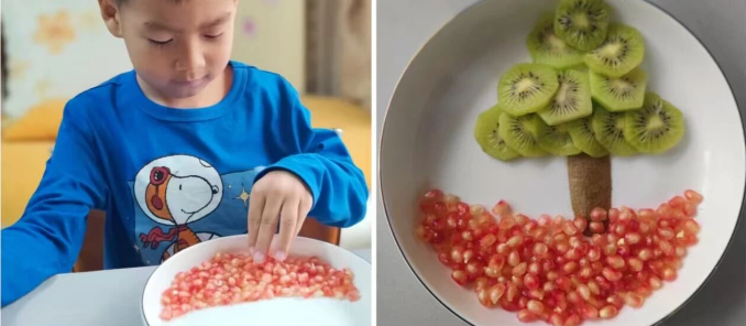 更令人惊喜的是孩子们的创意表达,当清脆的黄瓜、饱满的石榴、鲜亮的胡萝卜遇上童心,便化作了致敬祖国与欢庆中秋的独特献礼。