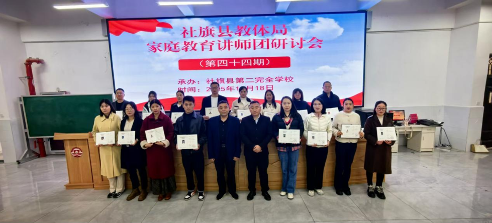2025年10月18日,社旗县教体局组织开展县级家庭教育讲师团第44期研讨会,对参加2025年河南省家长学校教师高级研修班学员发放了培训证书。