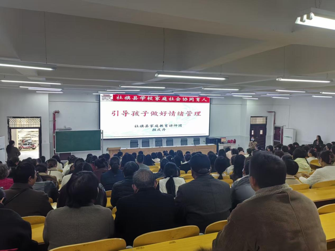 社旗县教体局中小学心理健康服务中心书记杜振堂指出,要结合凝聚各方力量发挥引领带动作用,大胆探索,把家校社协同育人项目作为推动教育强县建设的有力支撑。一要强化协同,凝聚“一盘棋”共识,构建起目标同向、措施同步、协作同力的育人共同体;二要精准赋能,提升“专业化”水平;三要探索创新,打造“特色化”品牌,在机制建设、课程开发、数智应用等方面形成一批可复制、可推广的经验和模式。同时开展了《引导孩子做好情绪管理》主题讲座活动。