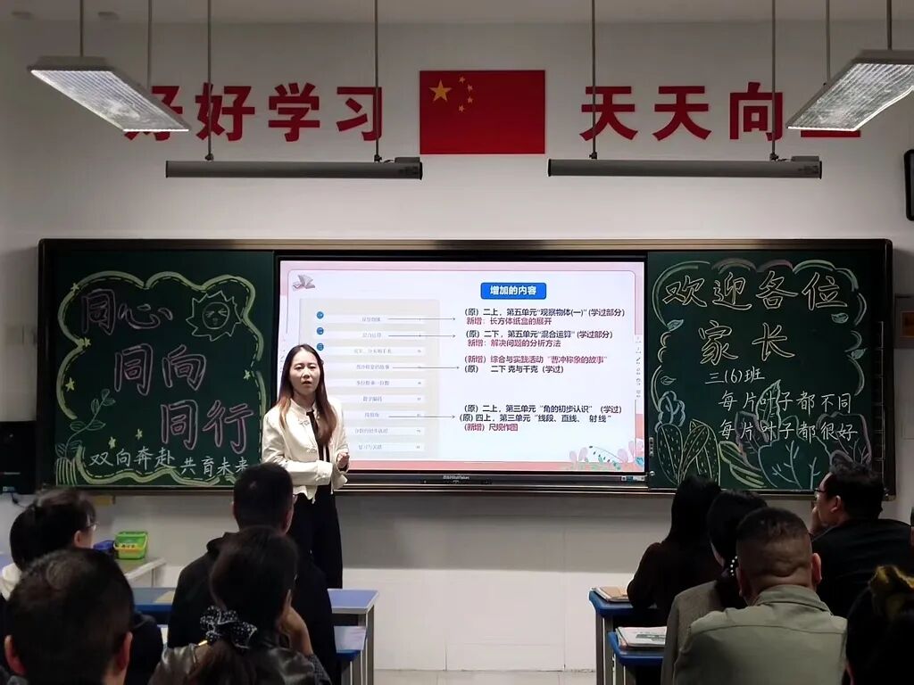 家长会上,各班级围绕“以经典为引,践行‘不言之教’”的主题展开交流,班主任及学科老师结合不同学段学生成长特点设计差异化内容,让家校共育在精准交流中走深走实。