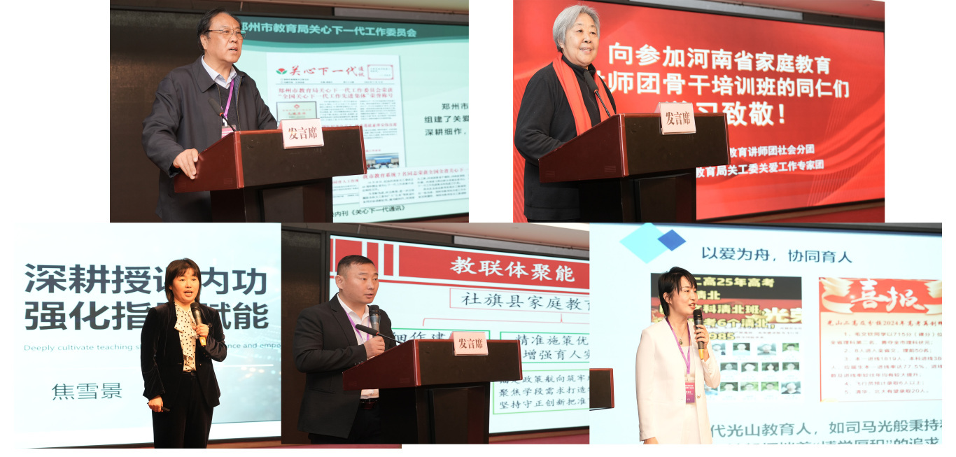 大会交流环节,3名讲师团代表、2名先进个人代表分别从不同角度做了精彩发言。其中,郑州市教育局关工委主任郭金汉,重点介绍了如何以关爱工作专家团为依托,推动全方位育人、扎实做好关心下一代工作的实践与思考。洛阳市孟津区教体局关工委副主任兼秘书长焦雪景结合自身经历,分享了在个人宣讲与组织团队宣讲过程中的实战经验。社旗县教体局中小学心理健康服务中心讲师团团长张炳新,交流了讲师团在组织构建与活动开展方面的有效做法。省家教讲师团社会分团副团长、郑州市关工委副主任周慧玲,深情回顾了多年从事家庭教育指导服务的历程,并分享了去年荣获“全国离退休干部先进个人”称号后,受到习近平总书记亲切接见的荣光与感悟。光山县第二初级中学教师张燕,则从一线实践出发,畅谈了投身家庭教育工作的真切体会与收获。