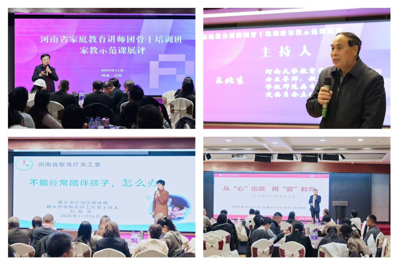 2025年11月25日—26日,河南省家庭教育讲师团骨干培训班在河南开封顺利举办。培训班通过总结交流讲师团工作经验、展评家教示范课程、研讨宣讲授课艺术、探讨家教工作难题等形式,进一步提高了家教骨干队伍的服务能力。